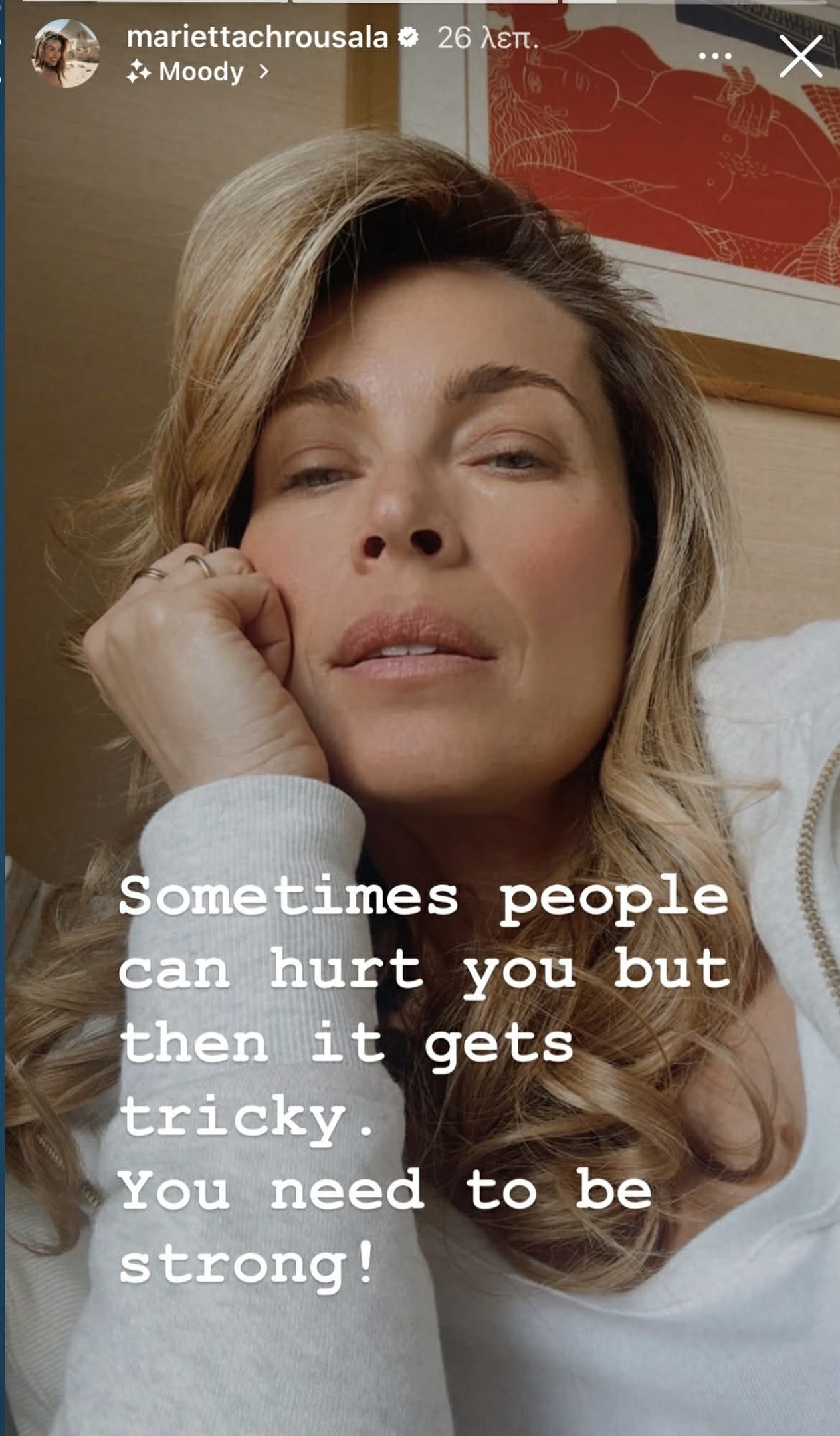 Ένα απρόσμενο και γεμάτο νόημα μήνυμα επέλεξε να μοιραστεί η Μαριέττα Χρουσαλά, εχθές το βράδι, ξαφνιάζοντας τους διαδικτυακούς της φίλους που έχουν συνηθίσει σε πιο χαρούμενες αναρτήσεις.