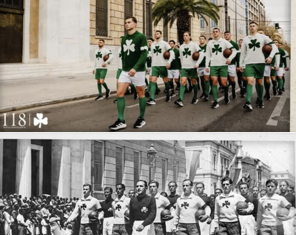 Οι φωτογραφίες που συνοδεύουν το κείμενο αποτυπώνουν την εμβληματική παρέλαση των ποδοσφαιριστών του συλλόγου το 1930 στην Πανεπιστημίου. Τιμώντας τα 118 χρόνια ζωής του Παναθηναϊκού, η ΠΑΕ αναβίωσε τη στιγμή με πρωταγωνιστές παιδιά των ακαδημιών, εκεί όπου το παρελθόν συναντά το μέλλον.