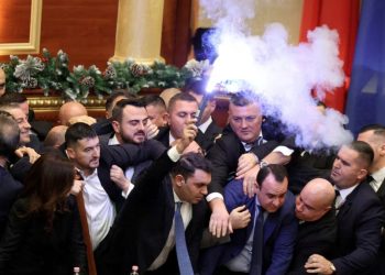 Χάος στη Βουλή της Αλβανίας – Πιάστηκαν στα χέρια, άναψαν φωτοβολίδες, πέταξαν νερά (Video)