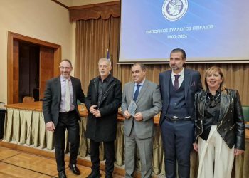 Τιμητική διάκριση στον Κωνσταντίνο Κατσαφάδο στην εκδήλωση κοπής πίτας του Εμπορικού Συλλόγου Πειραιώς