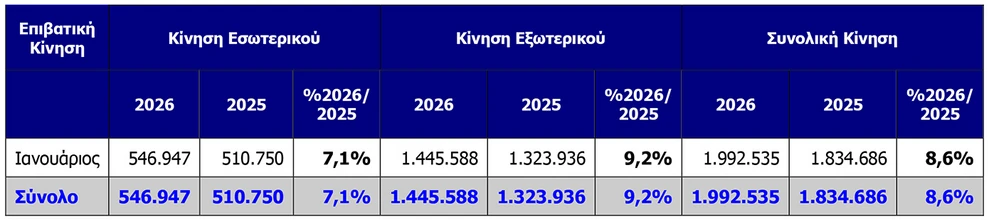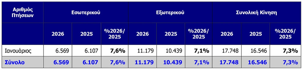 Με δυναμικό ξεκίνημα μπήκε το 2026 για τον Διεθνή Αερολιμένα Αθηνών, καθώς η επιβατική κίνηση τον Ιανουάριο σημείωσε σημαντική άνοδο της τάξης του 8,6%, προσεγγίζοντας τους 2.000.000 ταξιδιώτες.