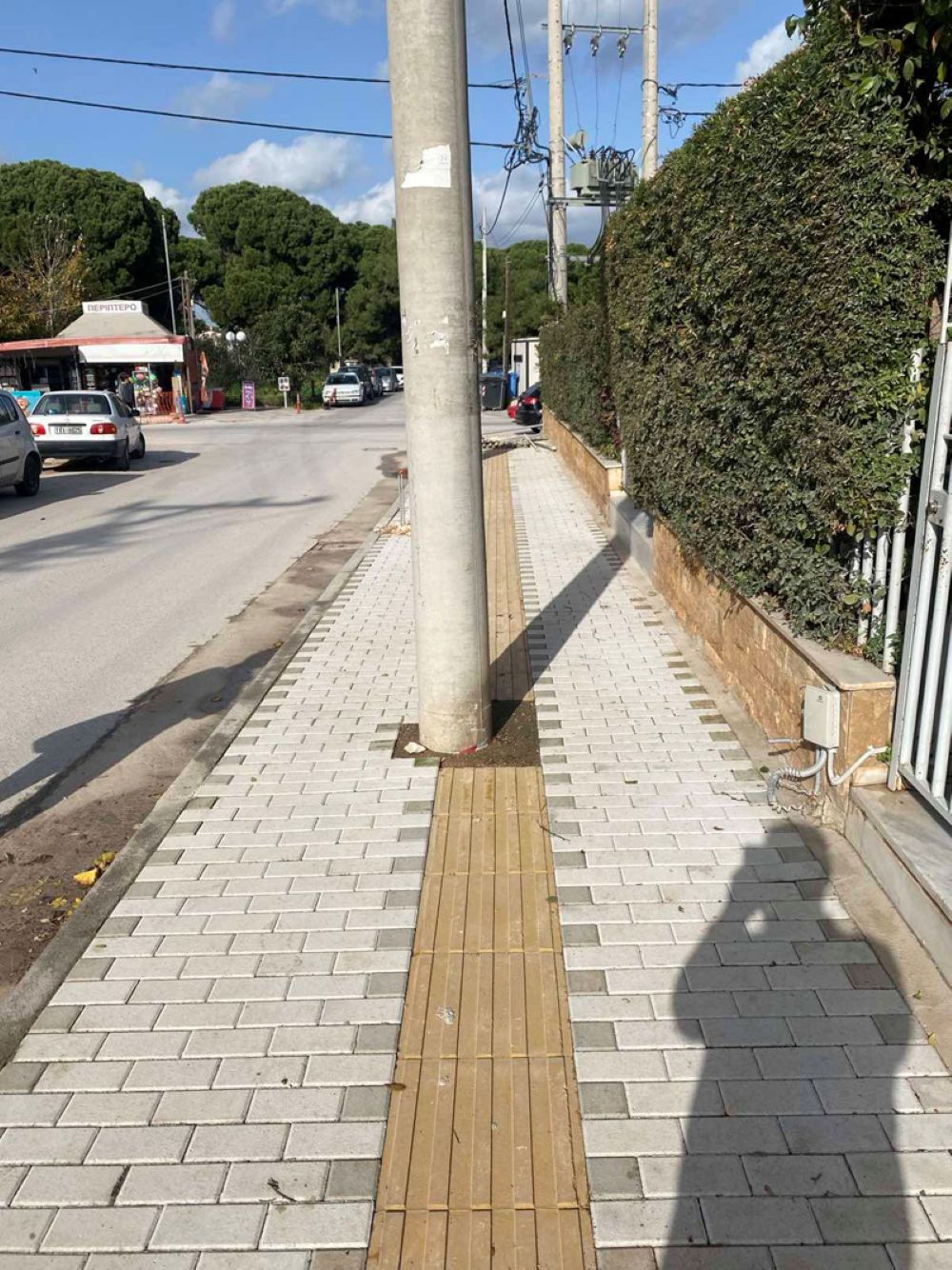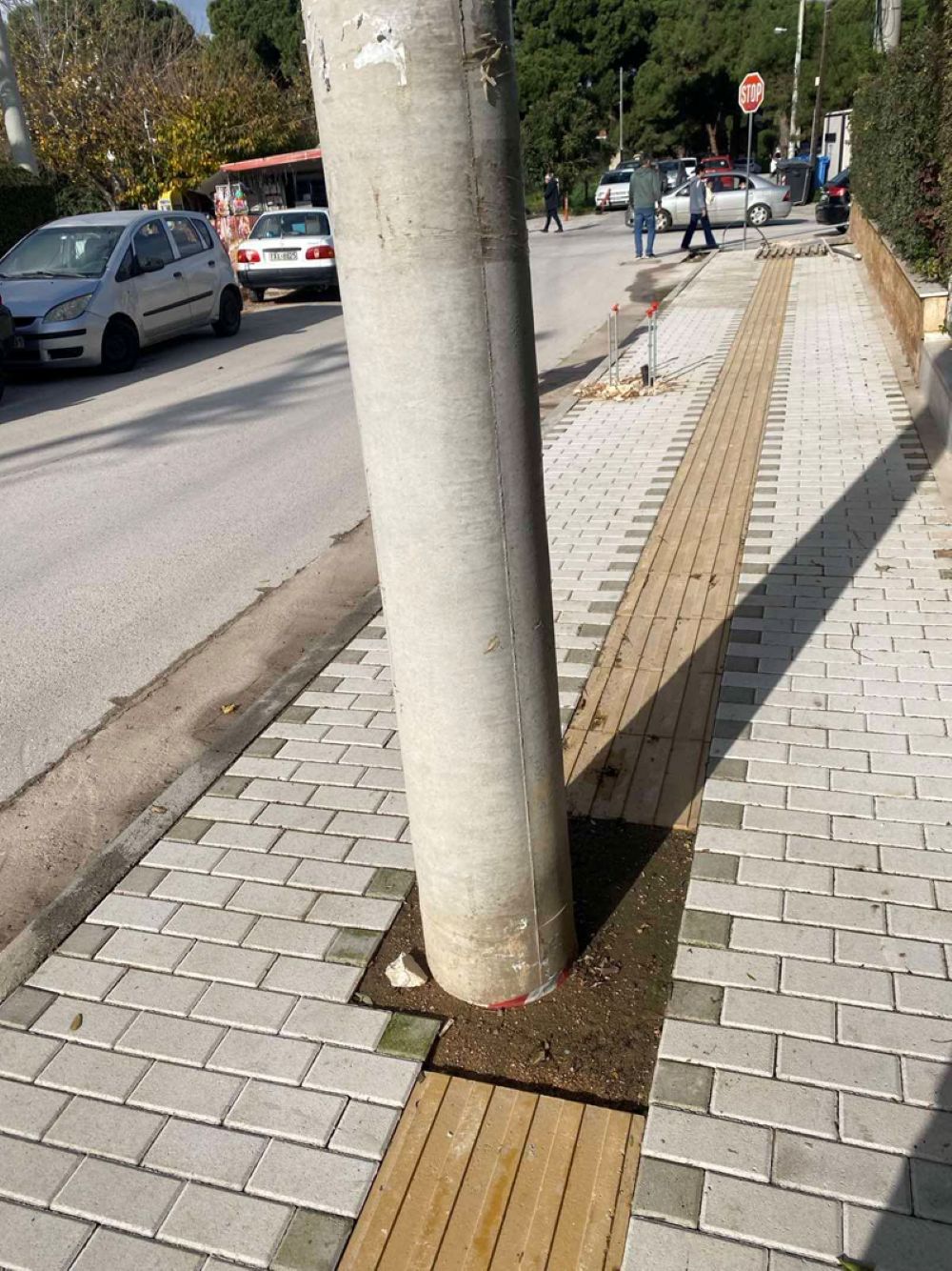 Οι συγκεκριμένες πλάκες, οι οποίες έχουν σχεδιαστεί για να προσφέρουν καθοδήγηση με ασφάλεια στα άτομα με προβλήματα όρασης, εγκαταστάθηκαν με κατεύθυνση που οδηγεί απευθείας σε κολόνες τοποθετημένες στο πεζοδρόμιο., γεγονός που όχι μόνο αποτυγχάνει να εξυπηρετήσει το σκοπό της, αλλά ταυτόχρονα δημιουργεί έναν εξαιρετικά επικίνδυνο «διάδρομο», αυξάνοντας τον κίνδυνο ατυχημάτων για άτομα με αναπηρία.