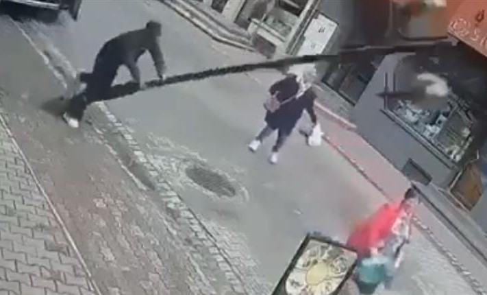Στο επόμενο δευτερόλεπτο η κολώνα «ξεριζώθηκε» με αποτέλεσμα να πέσει πάνω σε μια ανυποψίαστη γυναίκα, η οποία, ωστόσο, δεν τραυματίστηκε σοβαρά.