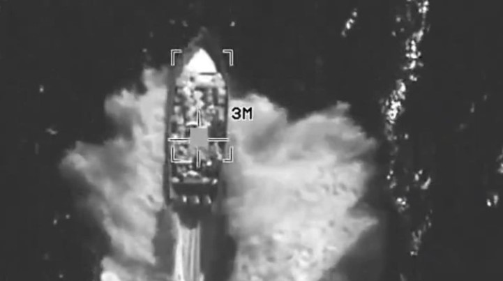 Μάλιστα ανάρτησαν αποχαρακτηρισμένο απόσπασμα βίντεο από το αεροπορικό πλήγμα, διάρκειας 21 δευτερολέπτων, στο οποίο εικονίζεται σκάφος καθώς σχίζει τα νερά με ταχύτητα, πριν από ισχυρή έκρηξη.