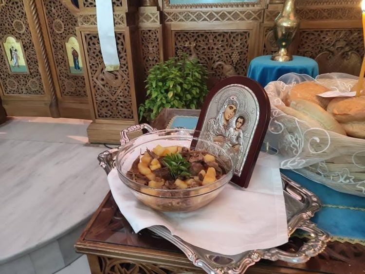 Οι πιστοί κάθονται κάτω από τα δέντρα, στον μικρό ελαιώνα που βρίσκεται ακριβώς δίπλα στην εκκλησία για να απολαύσουν το παραδοσιακό αυτό φαγητό. Οι στιγμές είναι σχεδόν ιερές, καθώς αποτελούν μια καλή ευκαιρία και μια άριστη αφορμή, οι παλαιότεροι να μιλήσουν στους νεότερους για τα ήθη, τα έθιμα και τις παραδόσεις των προγόνων τους.