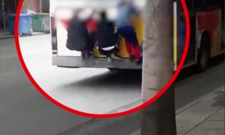 Νεαρός έχει σκαρφαλώσει σε συρμό του τραμ που διασχίζει με ταχύτητα την παραλιακή, την ιδιά ώρα φίλος του τον ακολουθεί οδηγώντας, τον καταγράφει με το κινητό του για να ανεβάσει το βίντεο στα social media.