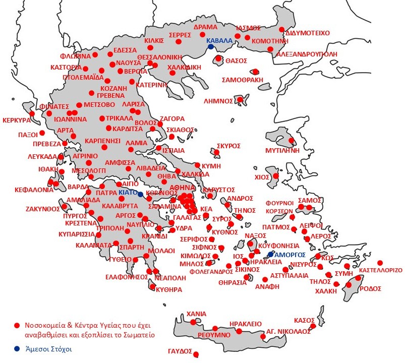 Πανεπιστημιακό Γενικό Νοσοκομείο Αλεξανδρούπολης, το Γενικό Νοσοκομείο Καλαμάτας, το Γενικό