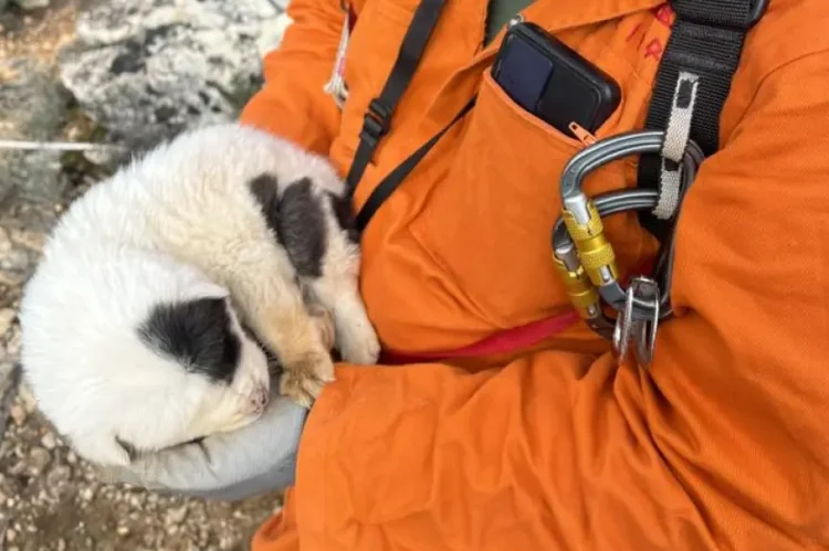 Η ομάδα «Χείρων» εντόπισε το κουταβάκι αλλά και σωρό από σκουπίδια στο σπήλαιο, προχωρώντας στη διάσωσή του. Όπως γράφει ο κ. Βαξεβανόπουλος στην ανάρτησή του, «αντίκρισαν τη φρίκη, αλλά και την ελπίδα στο Πήλιο, στο σπήλαιο της Καίτης».