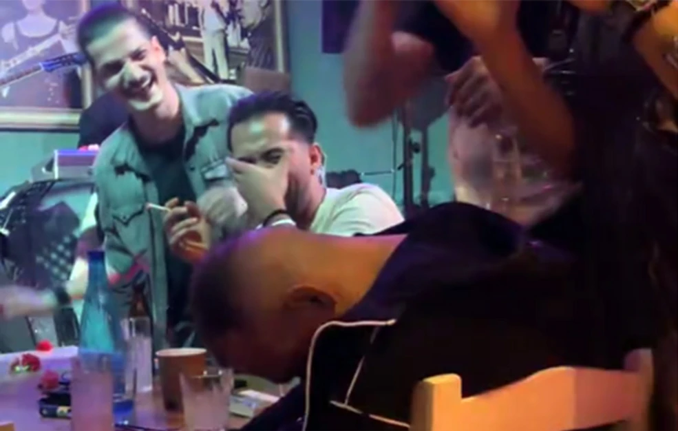 Συγκεκριμένα, στο βίντεο το οποίο έγινε viral στα social media ο γνωστός τραγουδιστής φαίνεται να είναι πάνω από ένα τραπέζι μαζί με τους οργανοπαίχτες του και να τραγουδά. Ένας από την παρέα έχει αποκοιμηθεί στην καρέκλα. Για αρκετή ώρα ο άνδρας που τον έχει πάρει ο ύπνος καθιστός, δεν αντιλαμβάνεται ούτε τον Δόξα που ερμηνεύει πάνω από το κεφάλι του τον «Έρωτα κλέφτη» με τον στίχο «κοιμήσου εδώ, αλλού μην πας», αλλά ούτε και τα τύμπανα που ηχούν δίπλα του.