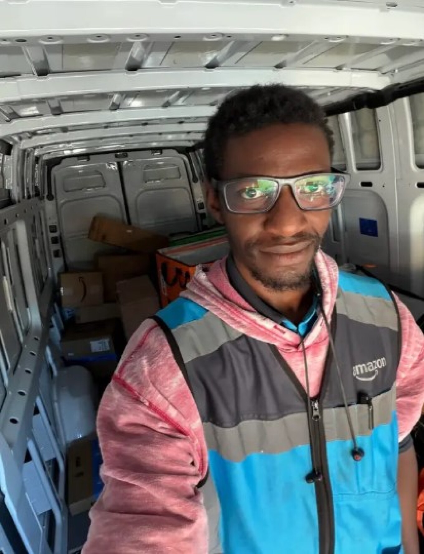 Η αποκάλυψη έγινε μέσω μιας φωτογραφίας που ανάρτησε ο ίδιος σε φόρουμ εργαζομένων στο Reddit, όπου απεικονίζεται μέσα στο βαν του κατά τη διάρκεια της βάρδιας, περιτριγυρισμένος από δέματα.
