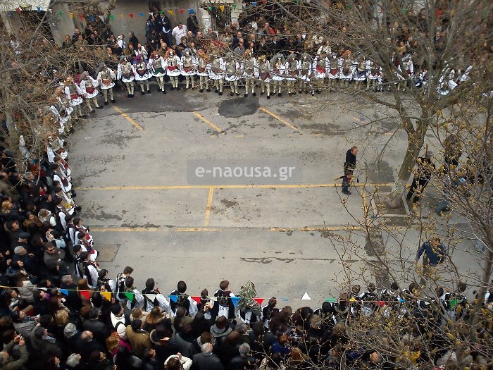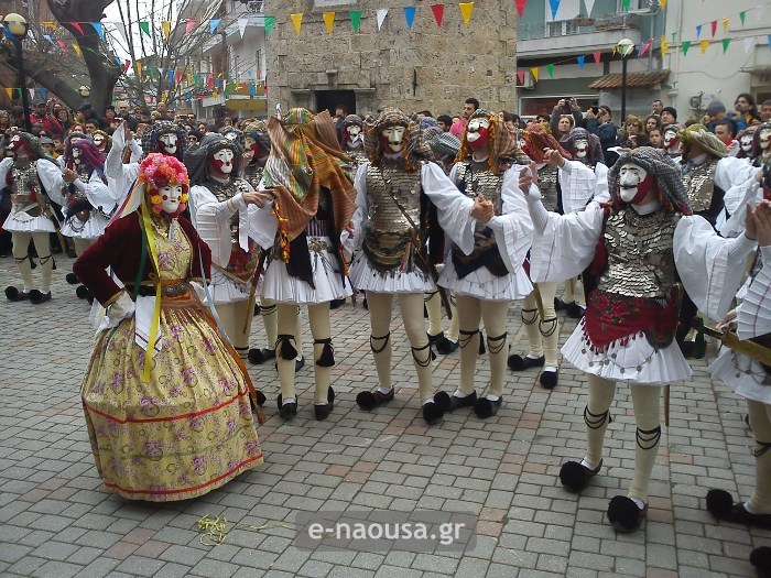 Στην Ηρωική Πόλη της Νάουσας, οι εκδηλώσεις εστιάζουν στο παραδοσιακό δρώμενο «Γενίτσαροι και Μπούλες», συνδυάζοντας την πολιτιστική κληρονομιά με το σύγχρονο γλέντι.