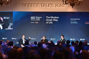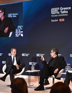 Η πρώτη συζήτηση του κύκλου «Greece Talks» πραγματοποιήθηκε σήμερα στο ξενοδοχείο «Μεγάλη Βρετανία» με τη συμμετοχή του Κυριάκου Μητσοτάκη και του Γιάννη Μπέζου, υπό τη συντονιστική ευθύνη του δημοσιογράφου Αντώνη Σρόιτερ.