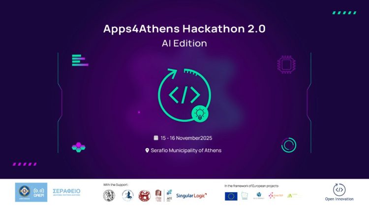 Στις 15 και 16 Νοεμβρίου θα πραγματοποιηθεί ο 2ος Μαραθώνιος Καινοτομίας του Δήμου Αθηναίων, με τίτλο «Apps4Athens Hackathon 2.0: AI Edition».