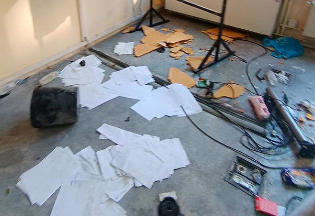 Σύμφωνα με μαρτυρίες, τόσο στο προαύλιο όσο και στο εσωτερικό του κτιρίου ξέσπασαν συμπλοκές μεταξύ ακροαριστερών και εκπροσώπων του ΚΚΕ, ενώ σημειώθηκαν υλικές ζημιές.