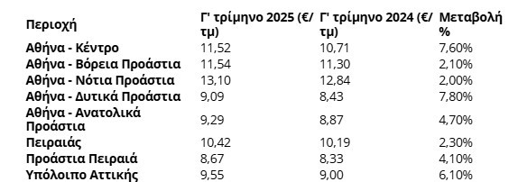 Αναλυτικά ανά περιοχή οι αυξήσεις «φωτιά»