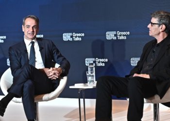 Ο Κυριάκος Μητσοτάκης στη συζήτηση του με τον Γιάννη Μπέζο, στο πλαίσιο του συνεδρίου «Greece Talks 2025 - The Intelligence...