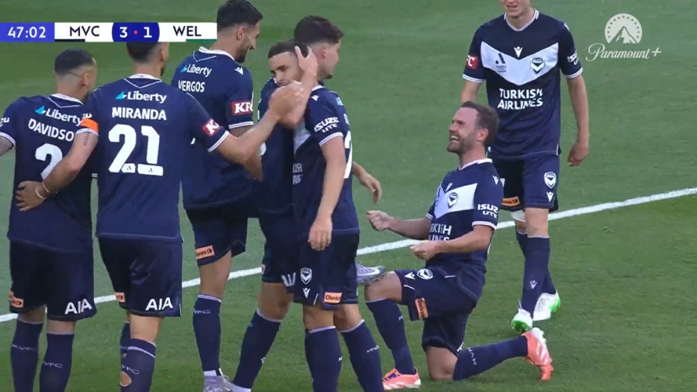 What a night Victory’s number nine is having! He gets his third of the match in just the 47th minute to extend Melbourne’s lead to two! 🔥