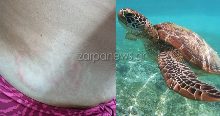 Θαλάσσια χελώνα δάγκωσε μία γυναίκα στην παραλία στο Μαράθι στα Χανιά Κρήτης.