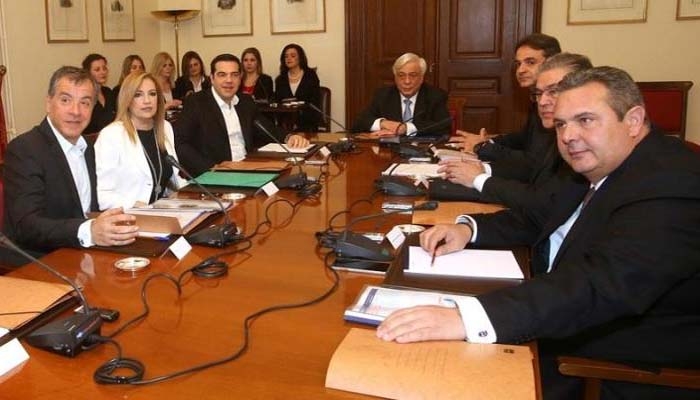 Οι πολιτικοί αρχηγοί κατά βάση συμφωνούσαν στο σχέδιο του κοινού ανακοινωθέντος, το οποίο είχε συντάξει ο Προκόπης Παυλόπουλος. Μέχρι και ο Γραμματέας του ΚΚΕ Δημήτρης Κουτσούμπας είχε κάνει την «ιστορική» διαπίστωση, ότι ναι μεν δεν μπορούσε να συμφωνήσει, αφού το ΚΚΕ ήταν εναντίον της ΕΕ, πλην όμως «όταν είσαι μέλος μιας συμφωνίας όπως η ΕΕ -εμείς τη λέμε και λυκοσυμμαχία-, δεν μπορείς να βγεις έξω σε μια νύχτα».