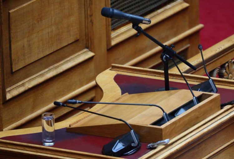 Κατά τη διάρκεια της τοποθέτησής της, η υφυπουργός δεν σήκωσε ούτε στιγμή το βλέμμα από το γραπτό κείμενο που είχε μπροστά της.