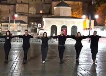 Το χασάπικο έξι Ελλήνων μπροστά στην Αγία Σοφία προκάλεσε θύελλα αντιδράσεων στην Τουρκία (Video)