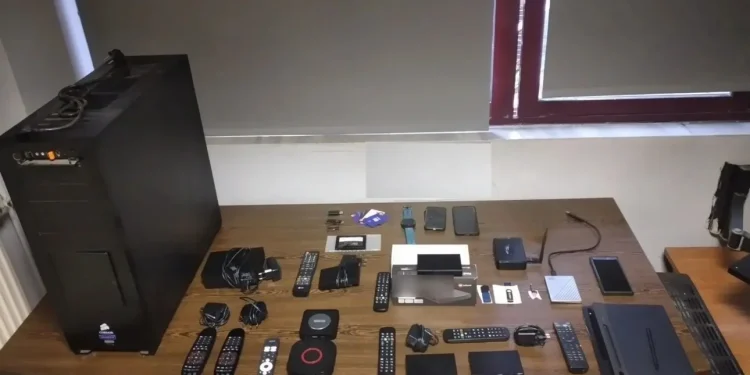 Στο πλαίσιο των ερευνών, βρέθηκαν και κατασχέθηκαν: 9 αποκωδικοποιητές με ισάριθμα ασύρματα τηλεχειριστήρια, κεντρική μονάδα ηλεκτρονικού υπολογιστή, 2εξωτερικοί σκληροί δίσκοι, 6 φορητές μονάδες αποθήκευσης ψηφιακών δεδομένων (USB sticks) κ.λπ..