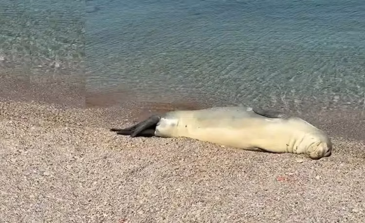 Με το στόμα ανοιχτό έμειναν οι λουόμενοι στην παραλία Γυάλα, στο Νημποριό της Σύμης, όταν έκανε μια απρόσμενη εμφάνιση μια φώκια, η οποία βγήκε για λίγο στην ακτή για να λιαστεί.