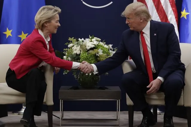 Η φον ντερ Λάιεν, σε μια πρώτη αντίδραση, σχολίασε ότι η εμπορική συμφωνία «θα φέρει σταθερότητα».