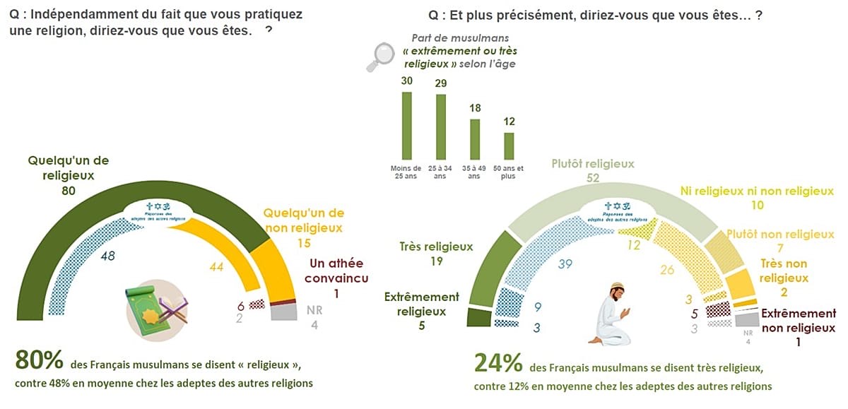 • Περίπου 57% δηλώνουν ότι οι κανόνες του Ισλάμ προηγούνται των νόμων της Γαλλικής Δημοκρατίας.