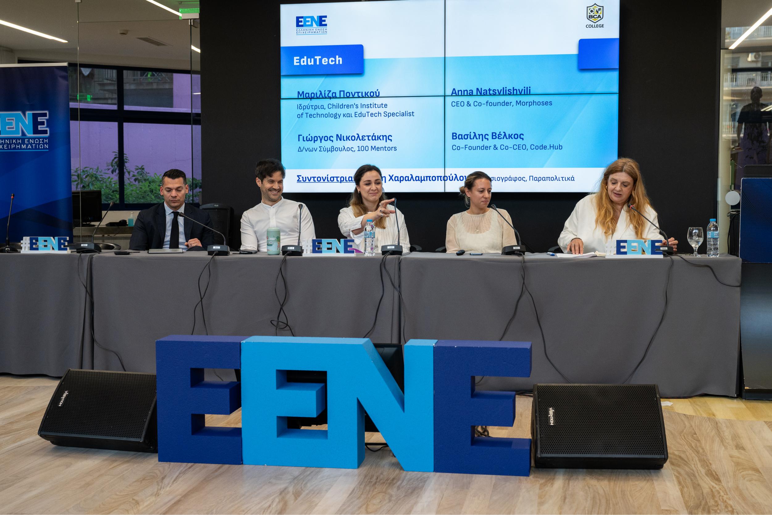 Με συζήτηση επικεντρωμένη στις καινοτομίες στην εκπαιδευτική τεχνολογία, με έμφαση στην εξατομίκευση, την ενίσχυση της πρόσβασης και την ψηφιακή ενδυνάμωση μαθητών και φοιτητών, ολοκληρώθηκε η ημερίδα. Το πάνελ συντόνισε η κ. Ισμήνη Χαραλαμποπούλου, δημοσιογράφος στα Παραπολιτικά στην οποία συμμετείχαν οι κυρίες Μαριλίζα Ποντικού, Ιδρύτρια του Children’s Institute of Technology και EduTech Specialist και Anna Natsvlishvili, CEO & Co-founder της Morphoses και οι κ.κ, Γιώργος Νικολετάκης, Δ/νων Σύμβουλος του 100mentors και Βασίλης Βέλκος, Co-Founder & Co-CEO του Code.Hub.