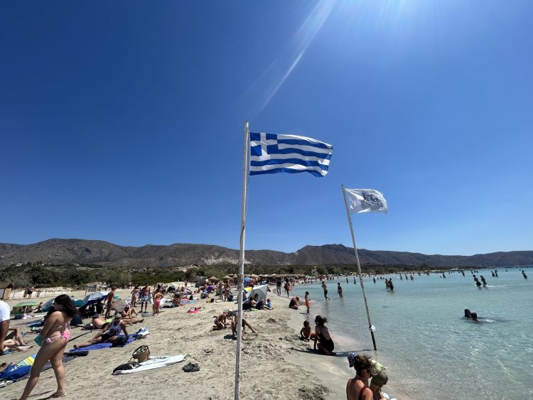 Η εικόνα στην παραλία θυμίζει… κοσμοσυρροή. Ομπρέλες και ξαπλώστρες γεμάτες, πετσέτες στρωμένες παντού στην άμμο, βουτιές στα καταγάλανα νερά και ατελείωτες ουρές για έναν καφέ ή ένα ελαφρύ γεύμα στα κοντινά beach bars. Η φράση «γίνεται της τρελής» ταιριάζει γάντι στην κατάσταση, καθώς κάθε σπιθαμή παραλίας καταλαμβάνεται από επισκέπτες που θέλουν να ζήσουν το όνειρο του Ελαφονησίου.