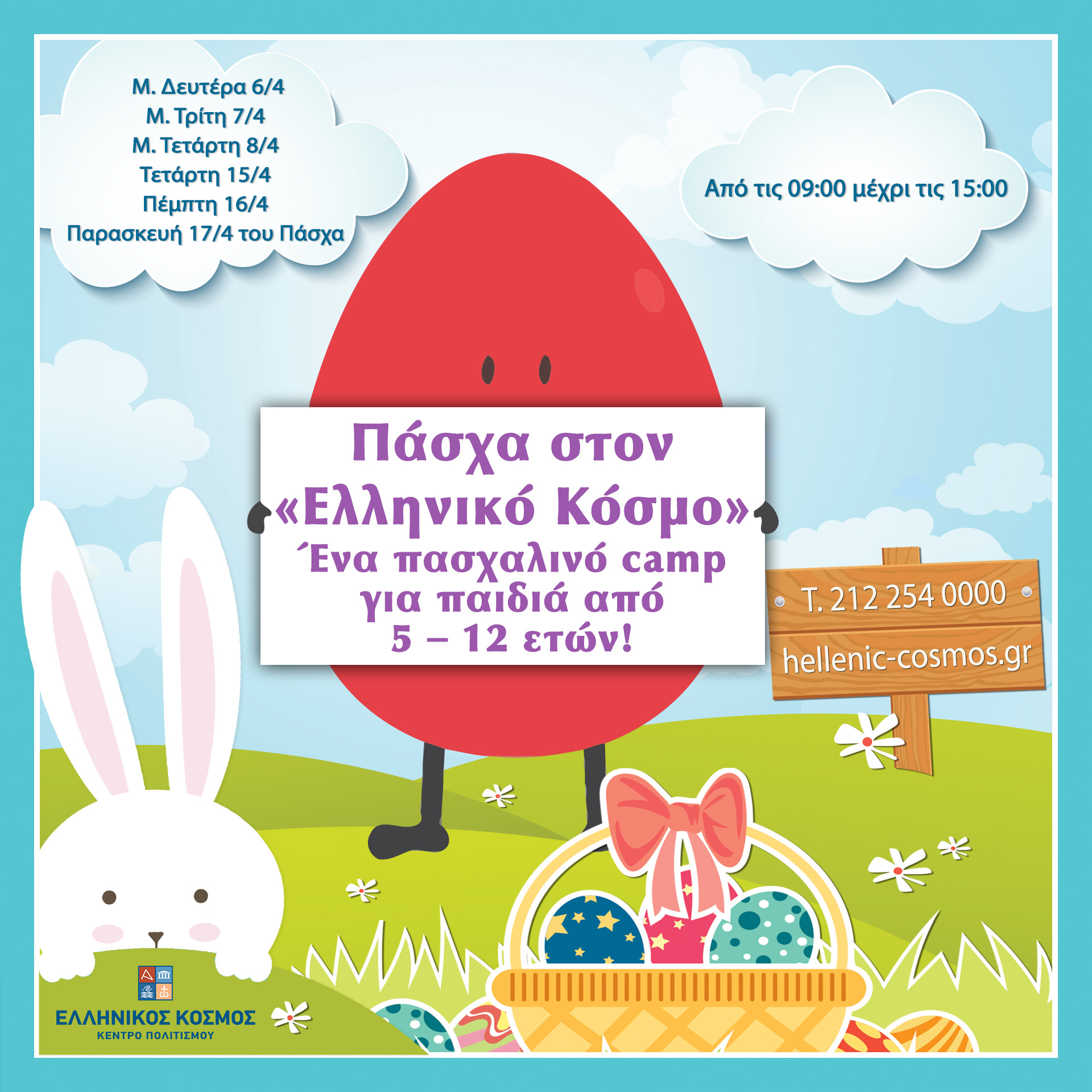 Το Κέντρο Πολιτισμού «Ελληνικός Κόσμος» ανοίγει τις πόρτες του για τις φετινές Πασχαλινές γιορτές, προσφέροντας μια μοναδική πασχαλινή εμπειρία σε παιδιά ηλικίας 5 έως 12 ετών.