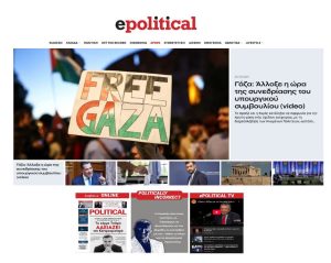 Εννοείται ότι σε αυτό το σημείο θα πρέπει να παινέψω το νέο «παιδί» του ομίλου μας. Το epolitical.gr, τη νέα ψηφιακή πλατφόρμα της «Political», που δημιουργήθηκε με στόχο να δώσει φωνή στη σοβαρή πολιτική ανάλυση, στο ζωντανό ρεπορτάζ και στον ουσιαστικό δημόσιο διάλογο.