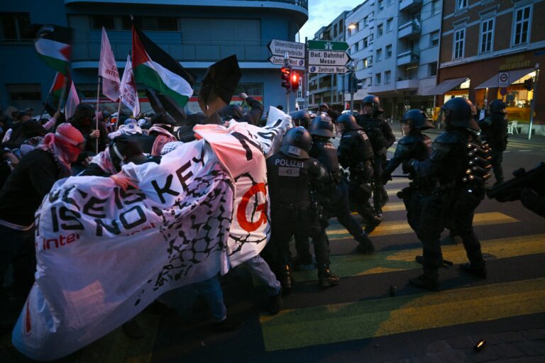 Μικρής διάρκειας επεισόδια σημειώθηκαν το βράδυ του Σαββάτου μεταξύ φιλοπαλαιστινίων διαδηλωτών και των δυνάμεων επιβολής του νόμου στους δρόμους της Βασιλείας, στην Ελβετία, λίγο πριν από την εμφάνιση της Ισραηλινής τραγουδίστριας στον τελικό της Eurovision.