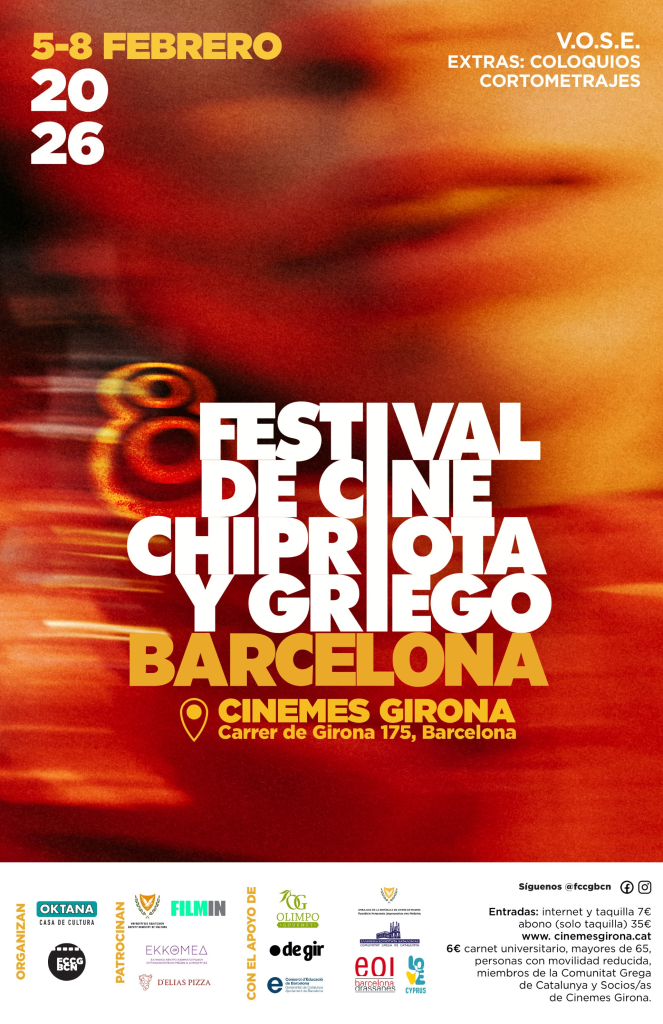 Το 8ο Φεστιβάλ Κυπριακού και Ελληνικού Κινηματογράφου της Βαρκελώνης δίνει και φέτος το καθιερωμένο του ραντεβού με το κοινό, επιστρέφοντας στο Cinemes Girona (Carrer Girona, 175) από την Πέμπτη 5 έως και την Κυριακή 8 Φεβρουαρίου.