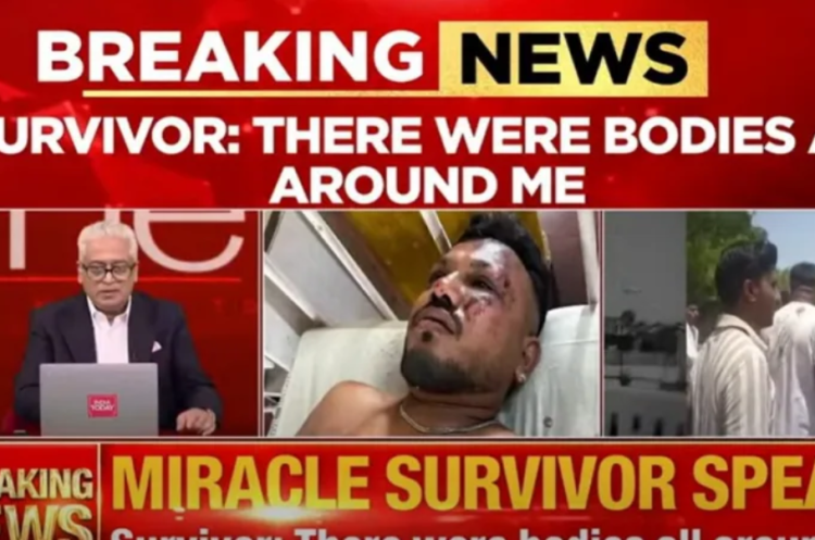Όπως μετέδωσε το India Today, οι αστυνομικές αρχές εντόπισαν έναν άνδρα, ο οποίος – σύμφωνα με τις πρώτες αναφορές – κατάφερε να γλιτώσει από την καταστροφή με τρόπο που μοιάζει με θαύμα. Στα πλάνα που δόθηκαν στη δημοσιότητα διακρίνεται ένας άνδρας να φορά λευκή μπλούζα, με εμφανή τα σημάδια της ταλαιπωρίας.
