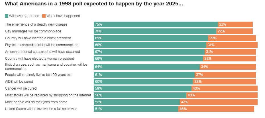 Το 1998 η Gallup και η USA Today κάλεσαν 1.055 Αμερικανούς στα σταθερά τους τηλέφωνα και τους ζήτησαν να κάνουν τις προβλέψεις τους για ένα μακρινό μέλλον: το 2025.
