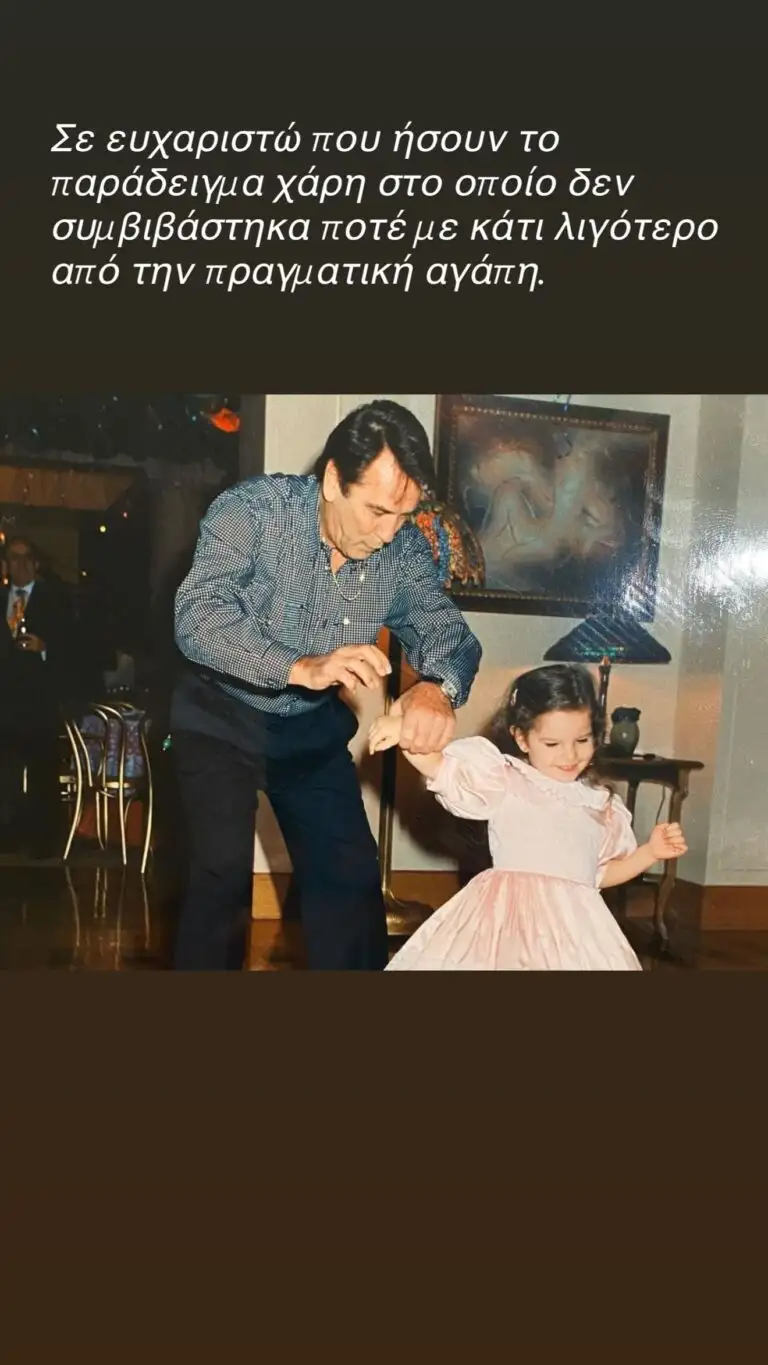 Όπως χαρακτηριστικά έγραψε, ο πατέρας της παραμένει ο «φάρος» της σε κάθε δυσκολία και χαρά, αποτελώντας το παράδειγμα που την έμαθε να μην συμβιβάζεται με τίποτα λιγότερο από την πραγματική αγάπη.
