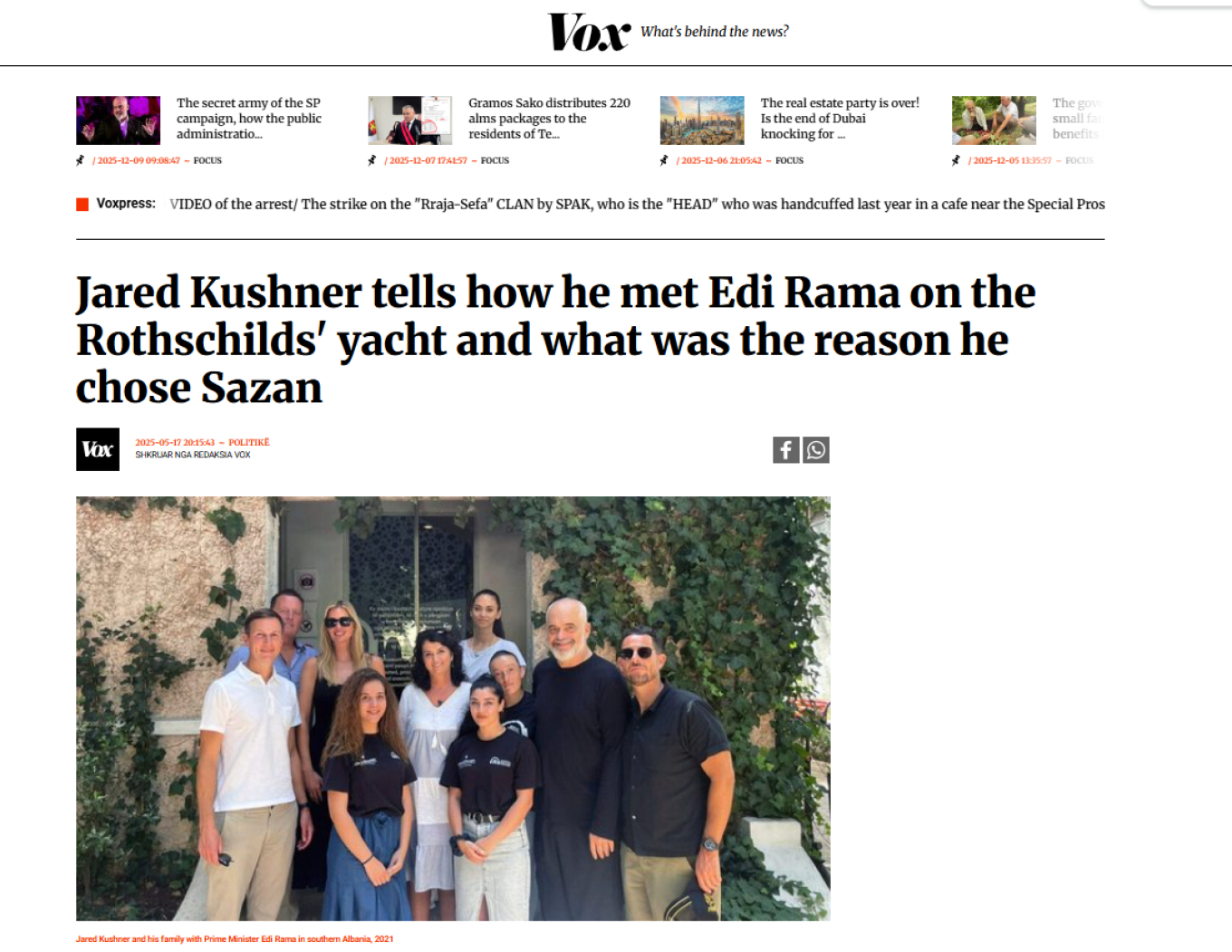 Ο Άουρον Τάρε, πρώην αρχαιολόγος που είχε μόλις αναλάβει γενικός διευθυντής της Εθνικής Υπηρεσίας Ακτογραμμής της Αλβανίας, οργάνωσε μια επίσκεψη κομμένη και ραμμένη στα μέτρα των Τραμπ-Κούσνερ και μερικών ακόμη πιθανών επενδυτών, ανάμεσά τους τον Νάσερ αλ Κελαϊφί, επικεφαλής της Paris Saint-Germain, και έναν επιχειρηματία από τα Ηνωμένα Αραβικά Εμιράτα.