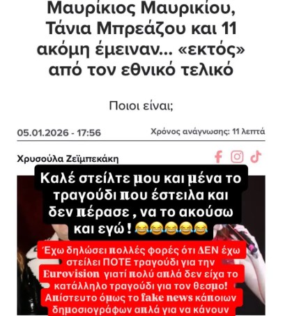 Η Τάνια Μπρεάζου διέψευσε κατηγορηματικά τις φήμες, ξεκαθαρίζοντας πως δεν έχει καταθέσει κανένα τραγούδι για τον διαγωνισμό.