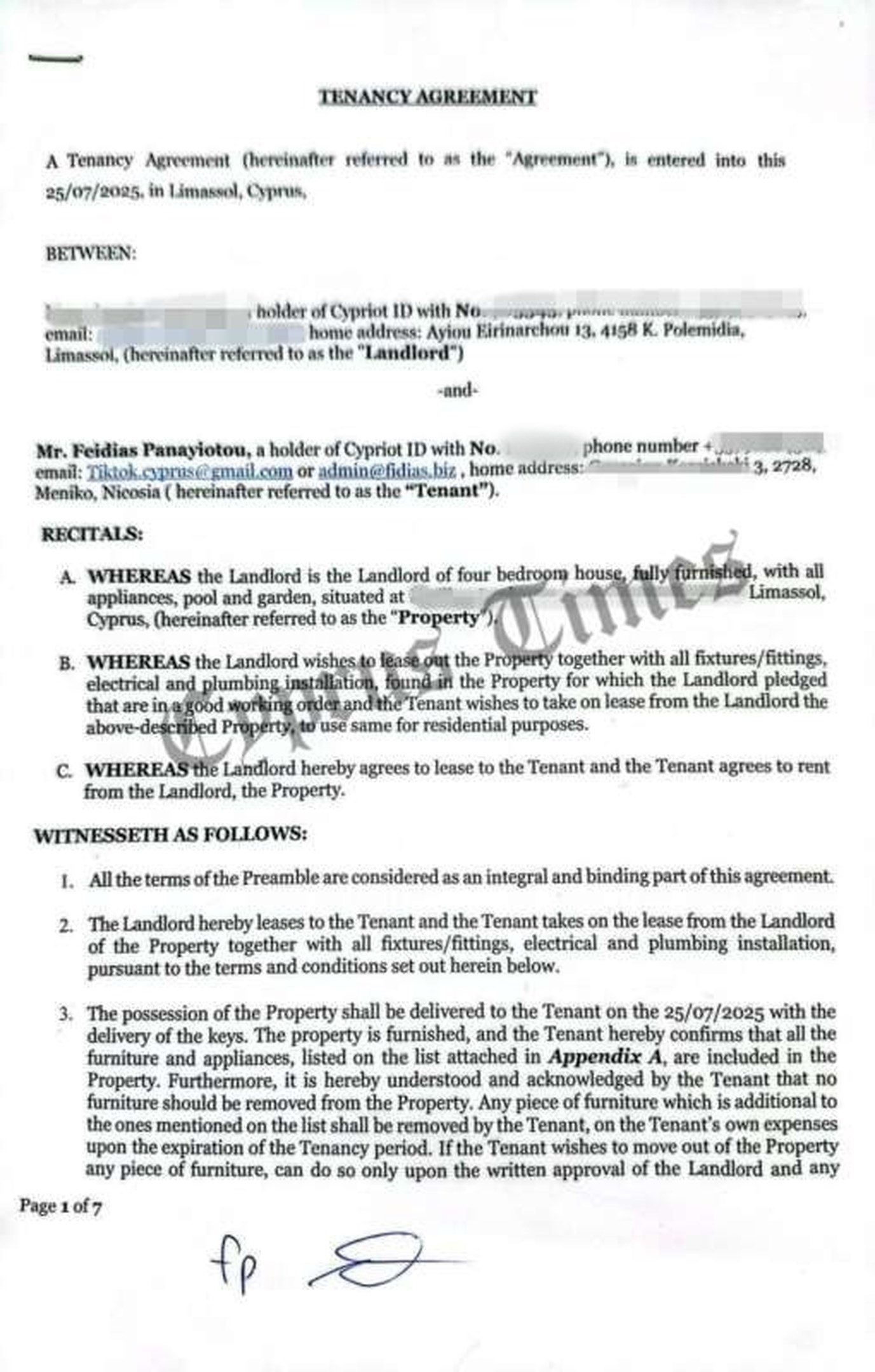 Παρά τις προσπάθειές του να πείσει για το καθεστώς «πλήρους διαφάνειας», το συμβόλαιο ενοικίασης που αποκαλύπτουν οι Cyprus Times φαίνεται να διαψεύδει τους ισχυρισμούς του.