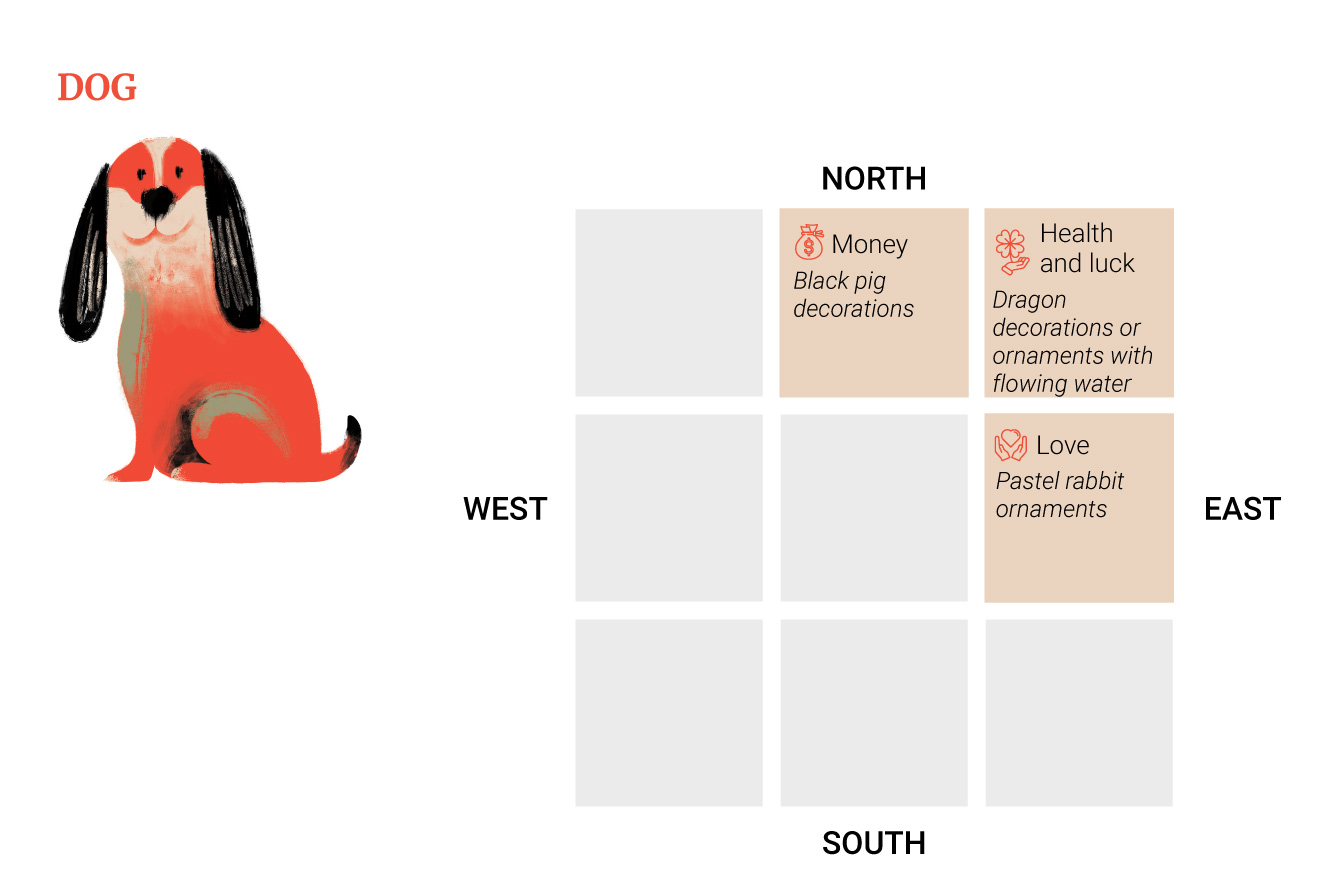 Η ερωτική στάση θα είναι στα ανατολικά, επομένως τα σκυλιά θα πρέπει να διακοσμήσουν αυτήν την περιοχή με παστέλ στολίδια σε σχήμα κουνελιού.