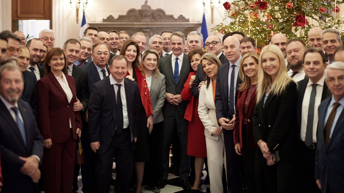 Ο πρωθυπουργός λίγο πριν πετάξει για Βρυξέλλες ήθελε να τους δει όλους. Να τους μετρήσει, να τους φωτογραφίσει (σ.σ.: είδα αρκετούς να στήνονται δίπλα στον πρωθυπουργό με φόντο το χριστουγεννιάτικο δέντρο), να τους δώσει και το γούρι – με το 2026 και το Μέγαρο Μαξίμου στην πίσω πλευρά και την υπογραφή του, για να μην ξεχνιόμαστε. Από τα ωραία της συνάντησης ήταν η ανταλλαγή ευχών με τον πρόεδρο της Βουλής Νικήτα Κακλαμάνη, ο οποίος μπορεί να προσήλθε χωρίς γραβάτα, δώρισε όμως μια ξεχωριστή γραβάτα -με φρεγάτες, παρακαλώ- στον πρωθυπουργό. «Δεσμεύομαι να τη φορέσω στην παραλαβή τους», είπε ο κ. Μητσοτάκης.