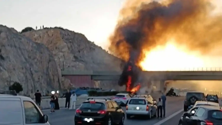 Κλειστή είναι αυτή την ώρα η Εθνική Οδός Αθηνών – Κορίνθου, στο ύψος της Κακιάς Σκάλας και στα δύο ρεύματα, αφότου μία νταλίκα ανετράπη και τυλίχτηκε στις φλόγες.