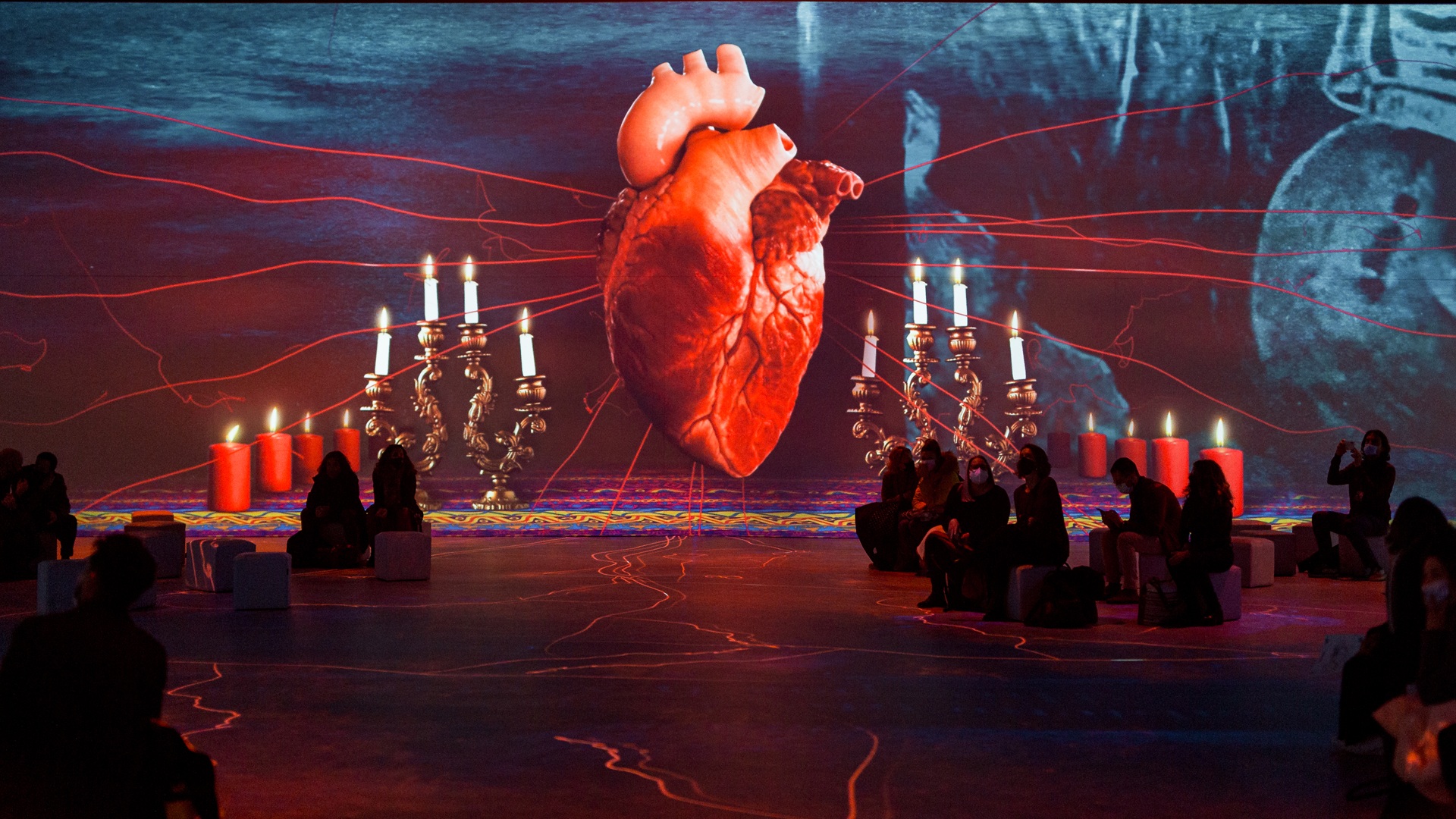 ΑΙΘΟΥΣΑ ΕΜΒΥΘΙΣΗΣ/IMMERSIVE EXPERIENCE: Η θεαματική οπτικοακουστική αφήγηση παρουσιάζει τα γεγονότα και τις εμπειρίες  που ανέδειξαν τη μοναδική ζωή της Φρίντα Κάλο και συνέβαλαν στη διαμόρφωσή της ως παγκόσμιου πολιτιστικού συμβόλου, μέσα από προβολές συνολικής επιφάνειας 500 τ.μ. με τη συνοδεία της μαγικής μουσικής του Ραφέλ Πλάνα (περιλαμβάνονται φωτογραφικό αρχειακό υλικό, ιστορικά ντοκουμέντα και απεικονίσεις χώρων που σημάδεψαν την προσωπική και ιστορική της διαδρομή)