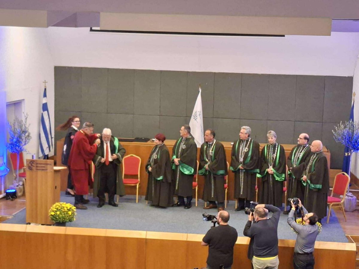 Η τελετή πραγματοποιήθηκε χθες 14 Οκτωβρίου, στο Αμφιθέατρο «Κώστας Θ. Γραμμένος» της Πανεπιστημιούπολης της Θέρμης. Η αναγόρευση του τιμώμενου σε Επίτιμο Διδάκτορα, η περιένδυση και η επίδοση τιμητικής πλακέτας στον Δρ. Γεώργιο Β. Αποστολόπουλο πραγματοποιήθηκε από τον Πρύτανη του Διεθνούς Πανεπιστημίου της Ελλάδος, Καθηγητή Σταμάτη Αγγελόπουλο, ο οποίος ανέφερε, μεταξύ άλλων, στην ομιλία του: « Κύριε πρόεδρε, η σημερινή αναγόρευση αποκτά ξεχωριστή σημασία, διότι ο δικός σας αγώνας για την υγειονομική αριστεία και την τεχνολογική καινοτομία βρίσκει άμεση ανταπόκριση στις βασικές αξίες του Διεθνούς Πανεπιστημίου της Ελλάδος. Το ΔΙΠΑΕ, ως ένα από τα μεγαλύτερα πανεπιστήμια της χώρας, έχει ενσωματώσει την καινοτομία στον πυρήνα της αποστολής του. Η έμφαση στην έρευνα αιχμής και η διαρκής αναβάθμιση των προγραμμάτων σπουδών μας αποσκοπούν στη δημιουργία αποφοίτων ικανών να πρωταγωνιστήσουν στο σύγχρονο, απαιτητικό περιβάλλον της υγείας. Οι φοιτητές μας, με γνώση και υψηλή κατάρτιση, αποτελούν τη ζωτική δύναμη που τροφοδοτεί κορυφαίες δομές όπως και ο Όμιλος Ιατρικού Αθηνών. Η επιλογή μας να σας τιμήσουμε αναδεικνύει ακριβώς αυτή τη σύγκλιση στόχων: τη δέσμευση του Πανεπιστημίου στην παραγωγή γνώσης και τη δική σας δέσμευση στην πρακτική εφαρμογή της, με στόχο την αναβάθμιση της ζωής του πολίτη».