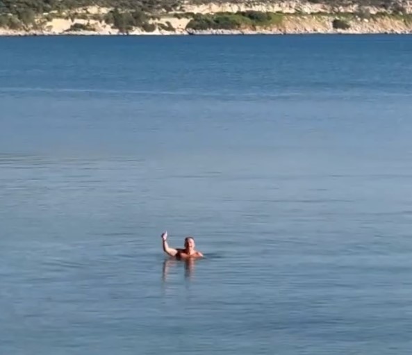 Γιώργος Λιάγκας: Η πρώτη βουτιά στη θάλασσα εκ…του ασφαλούς (Photo)
