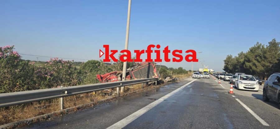 Σύγκρουση νταλίκας με Ι.Χ. στην εθνική οδό Θεσσαλονίκης-Αθηνών
