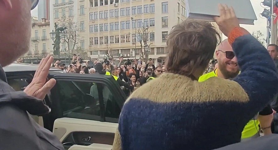 Ο Πιτ έφτασε με μαύρο SUV και, παρά τον αναμενόμενο πανικό που προκάλεσε η παρουσία του, εμφανίστηκε χαλαρός και προσιτός. Χαιρέτησε τους θαυμαστές που είχαν συγκεντρωθεί από νωρίς, ανταποδίδοντας τα χειροκροτήματα με ένα εγκάρδιο «Hello guys», πριν περάσει στο εσωτερικό του κτιρίου για να ξεκινήσει το πρόγραμμα της ημέρας.