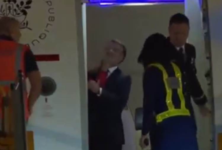 “C’était un moment où le président et son épouse décompressaient une ultime fois avant le début du voyage en chahutant. C’est un moment de complicité” indique l’entourage d’E.Macron suite à de nombreux commentaires sur les réseaux sociaux. Après avoir démenti, dans un premier… pic.twitter.com/diFhy5nFxN